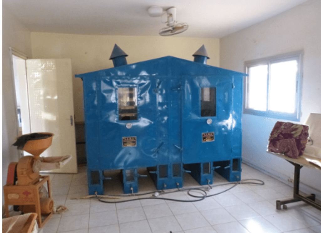 Séchoir à graines à gaz provisoirement entreposé dans la salle informatique de la Maison de la Femme