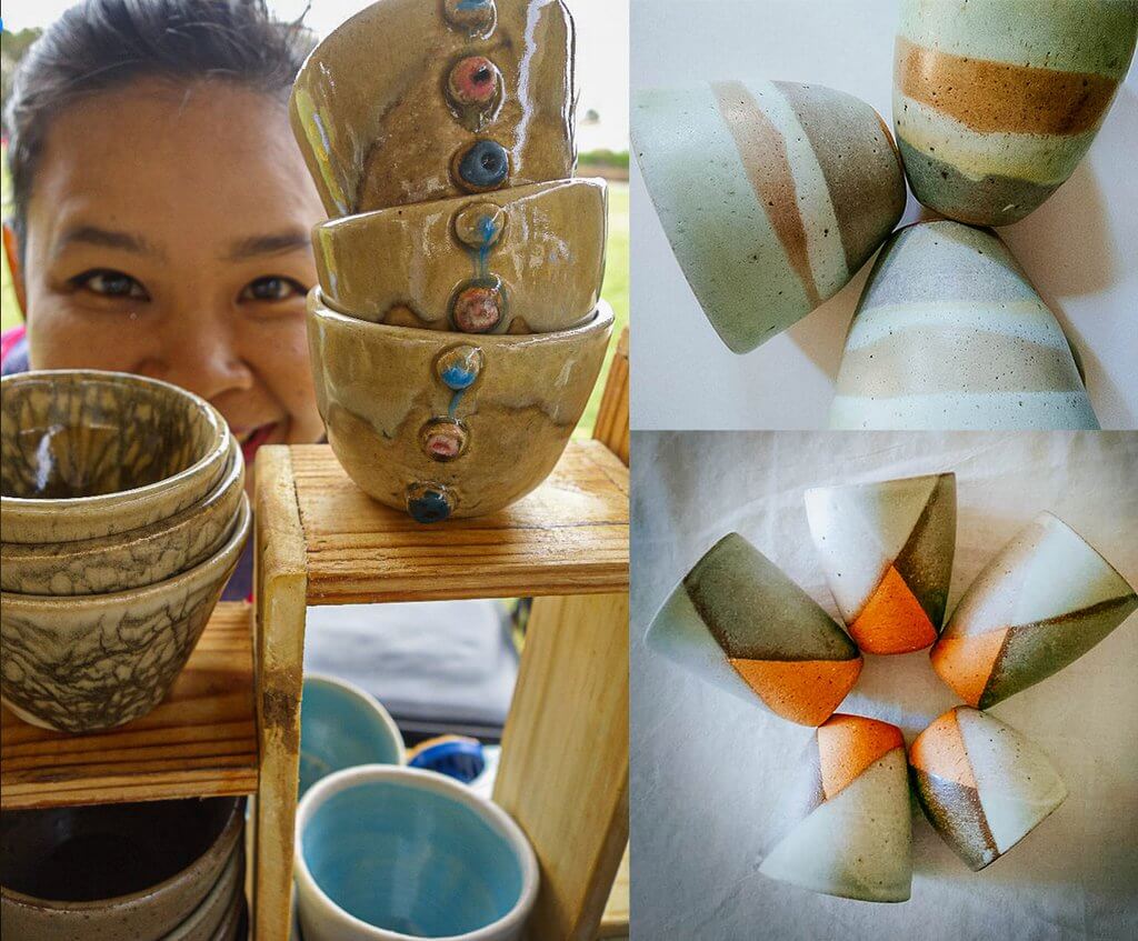 Nina est une céramiste installée à Ngaparou. Elle y produit artisanalement différents styles de céramiques utiles et décoratives : tasses à thé, théières, vases, saladiers, bols mais aussi des objets artistiques uniques.