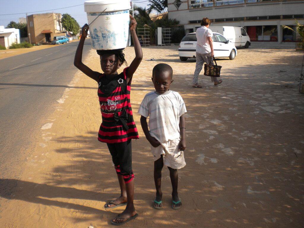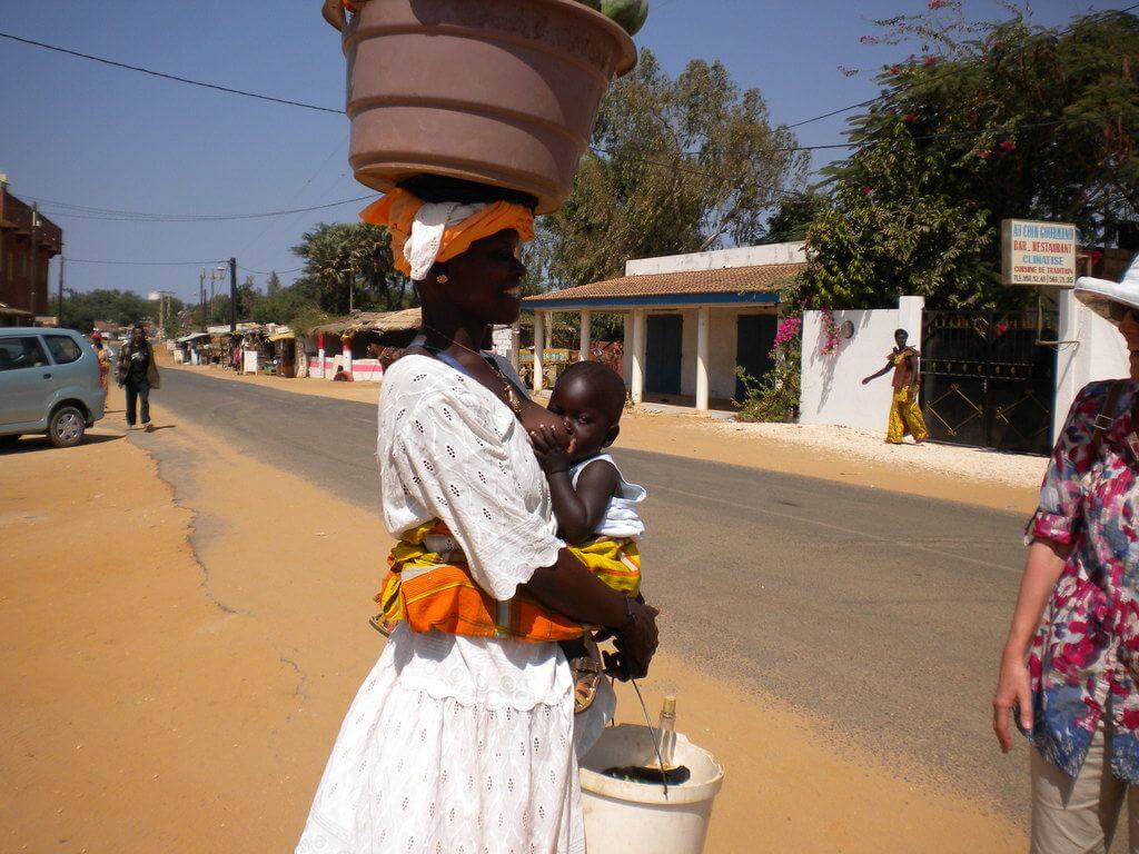 Une seule route goudronnée traverse La Somone, utilisée par la population, les vélos, les autos, les chèvres chevaux et ânes en bonne intelligence et en toute légalité ! des jardins les bougainvilliés débordent…