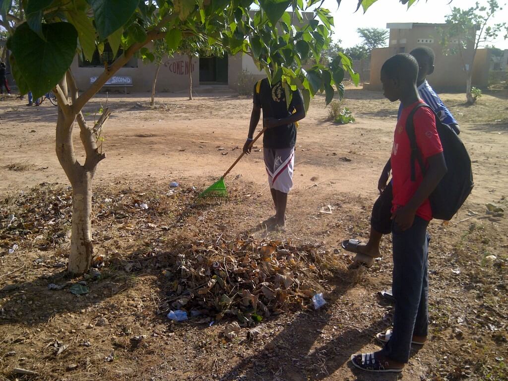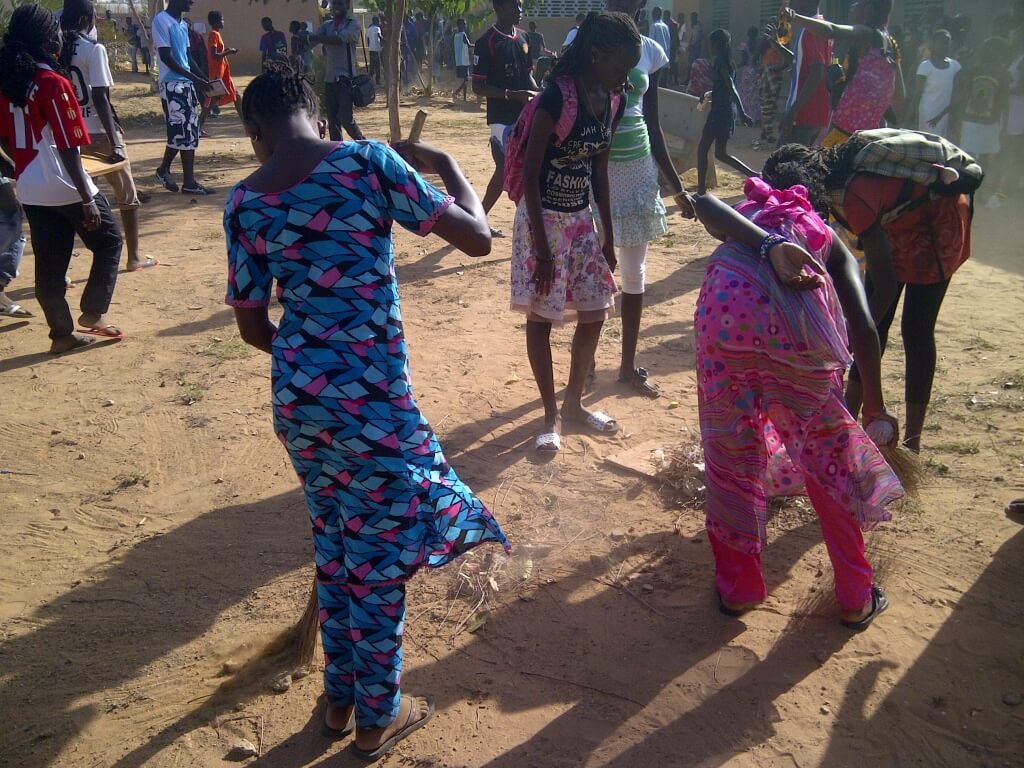Vendredi 23 novembre 2012 a eu lieu une journée d’investissement humain au collège de Ngparou/Somone.A 9 heures déjà, les cours ont été arrêtés pour démarrer le nettoyage. Les professeurs organisent les élèves en petits groupes: les filles s’occupent de la propreté des salles et les garçons munis de râteaux , de fourches ,de coupe- coupes, de brouettes …désherbent la cour et les alentours des classes.Cette journée n’aurait pas réussi si la mairie n’avait pas envoyé son camion et son personnel pour ramasser toutes les ordures entassées. Ainsi vers 13 heures, l’école est devenuz un cadre propre et les élèves ont aussi compris que c’est à eux de prendre soin de leur environnement.