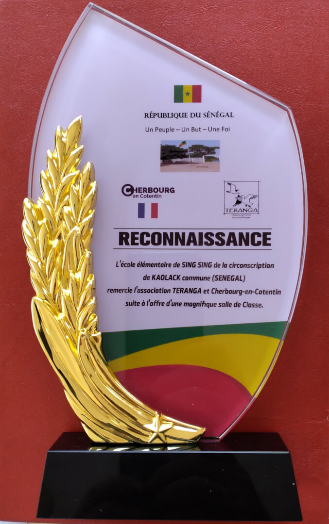 Le secrétaire général de l’IEF, M.Assane Badji, a remercié très chaleureusement, au nom de M. l’Inspecteur, du Ministre de l’Education et du Président de la République du Sénégal, l’association Teranga Cherbourg et la commune de Cherbourg qui a accordé une subvention pour cette construction.